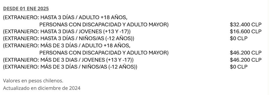 Entrada para o Parque Nacional, adquirida online em https://www.pasesparques.cl/parks/torres-del-paine